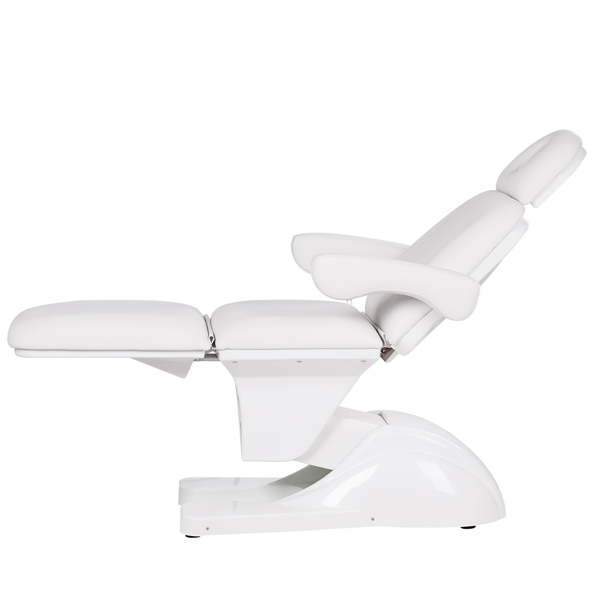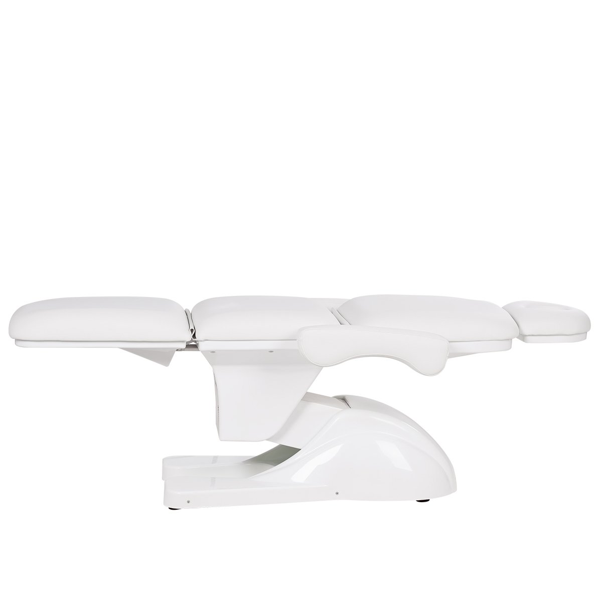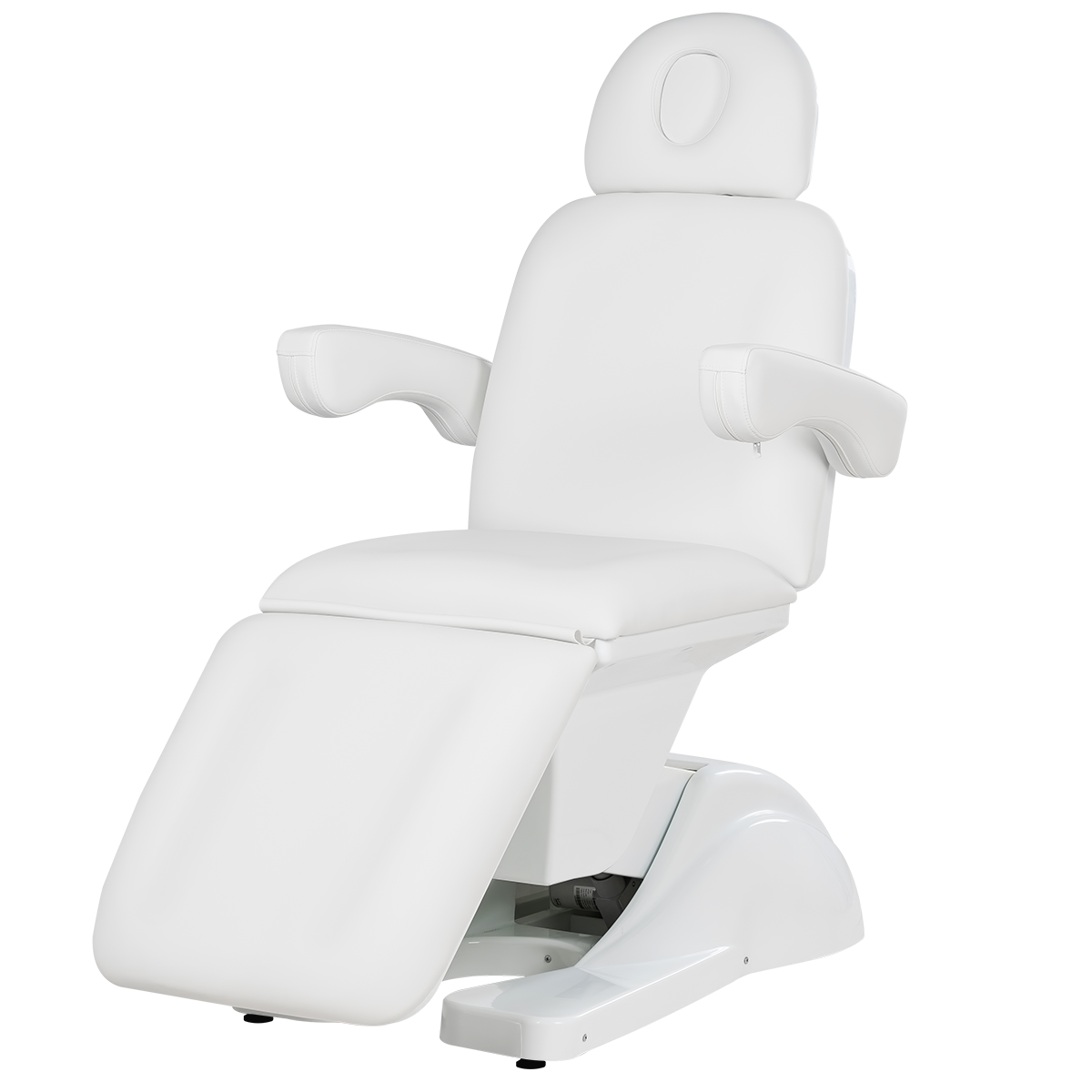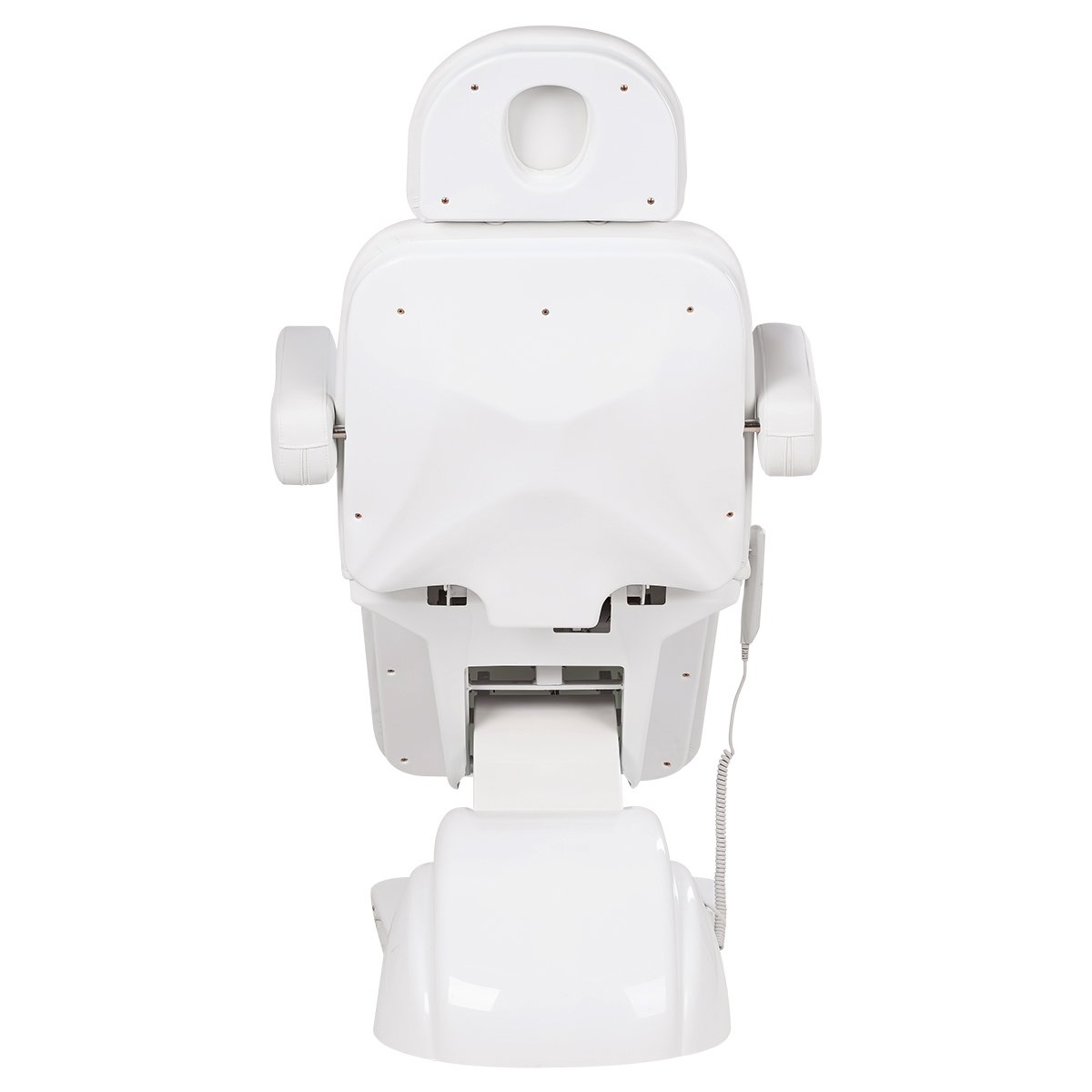 Комплектация данного косметологического кресла включает сидение, подлокотники, подголовник и четыре электромотора.