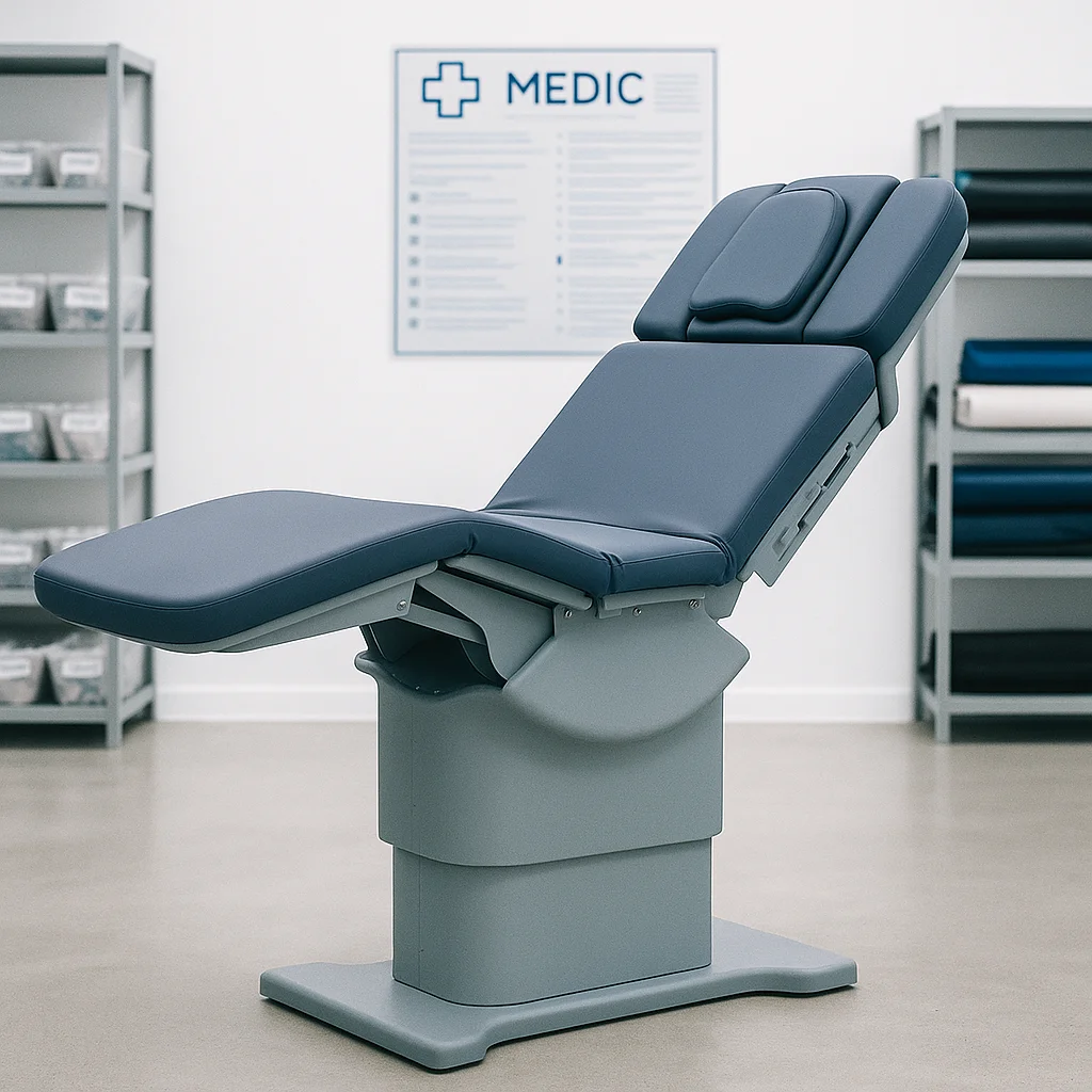Автоматическая адаптация: При подъеме спинки ножная секция автоматически изгибается, обеспечивая естественное и комфортное положение тела пациента.