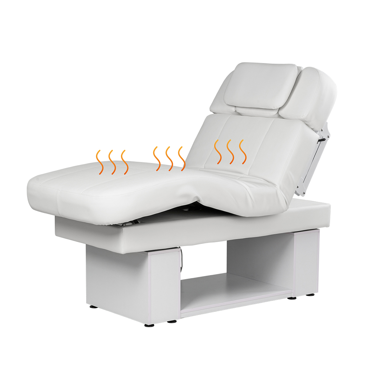 Электроподогрев ложа обеспечивает комфорт и удобство пациента во время проведения процедуры. После нажатия кнопки включения обогрева (красный индикатор/зеленый индикатор) температура начнет повышаться. Когда с комнатной температуры она достигнет максимального значения, то сработает защитный механизм, температура медленно снизится примерно до 35 градусов, а затем снова медленно нагреется до 42 градусов.