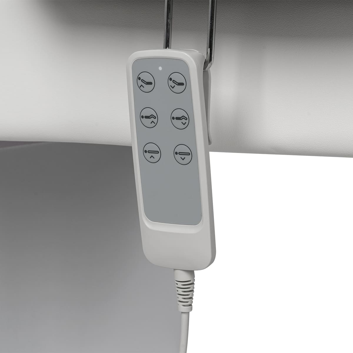 Каркас кушетки оснащен двумя колоннами, это обеспечивает равномерное распределение нагрузки и устойчивость кушетки. Высота регулируется с помощью двух синхронизированных электромоторов, что добавляет надёжности и увеличивает срок службы.