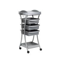 В нижней части тележки предусмотрена полка, на которой можно разместить высокие бутылки с косметическими средствами. Это позволит вам всегда иметь под рукой необходимые продукты для ухода за волосами.