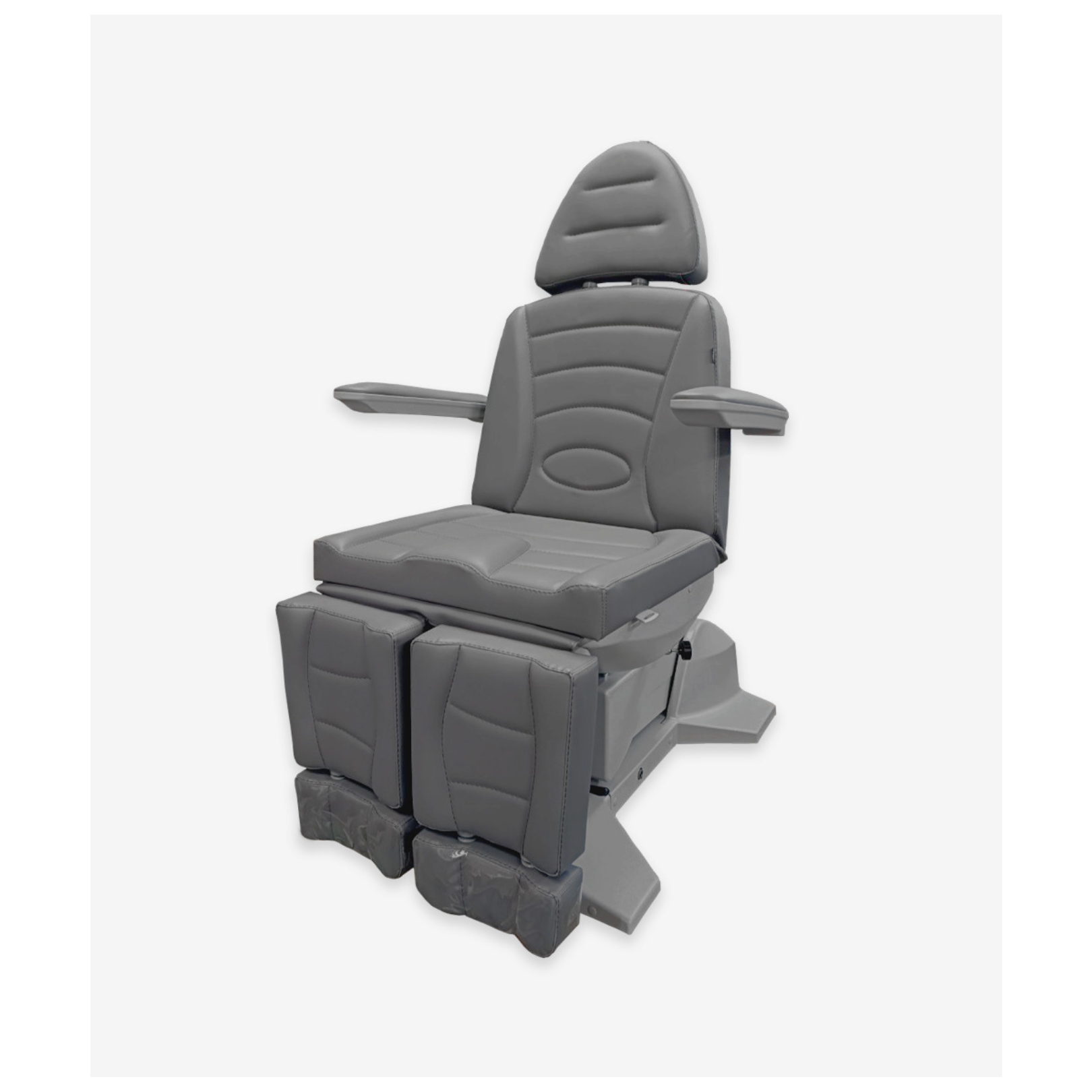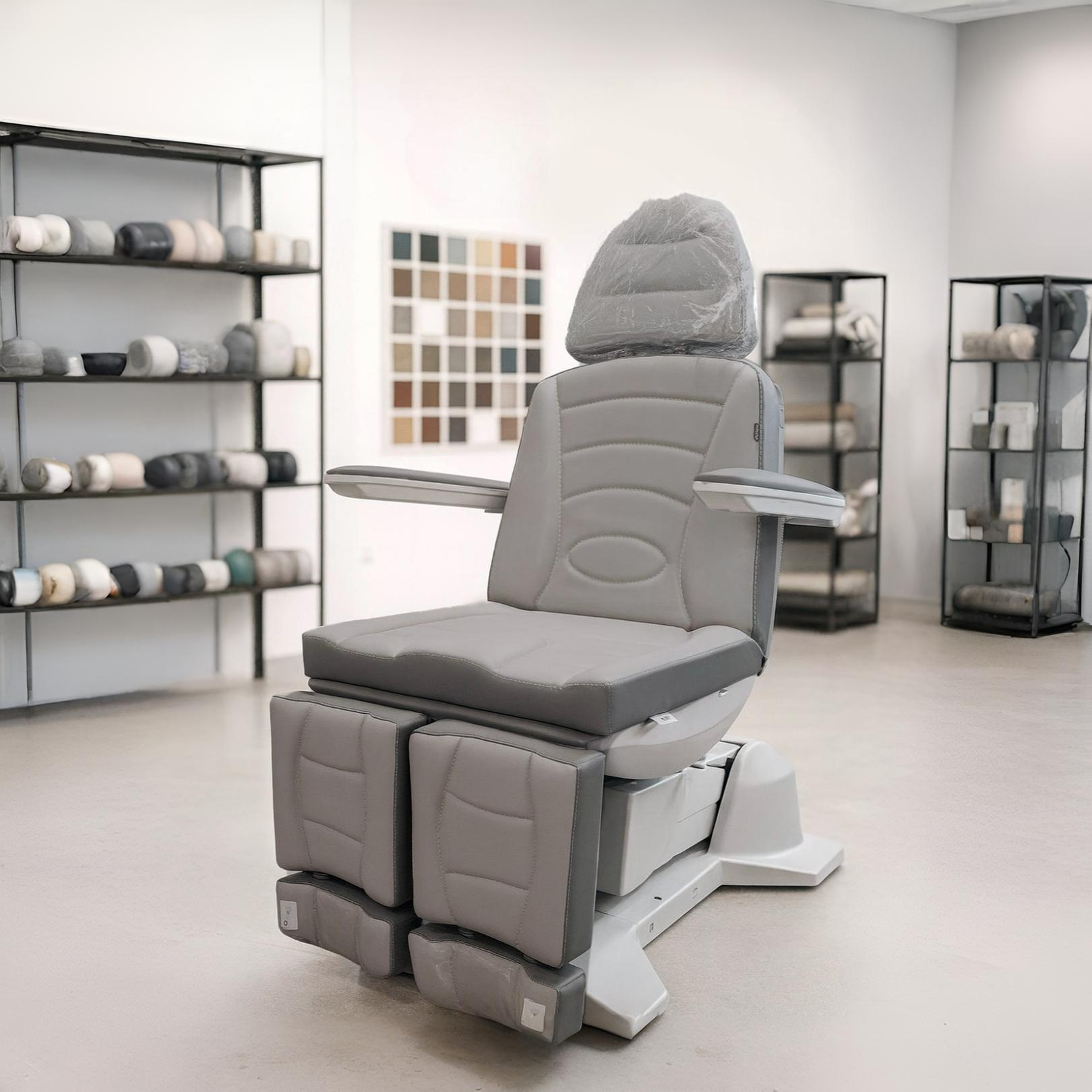 Кресло оснащено пятью электромоторами для точной и комфортной работы подологов и специалистов педикюра. С помощью моторов можно регулировать: высоту, угол наклона спинки, угол наклона сиденья и ножные опоры.