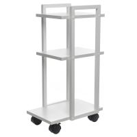 Узкая, компактная, аккуратная тележка на колесиках. Прочный стальной каркас сечением 20х20 мм, устойчивая порошковая окраска, колесики со стопорами. 2 полочки 230*305 мм и нижняя 375*230 мм.