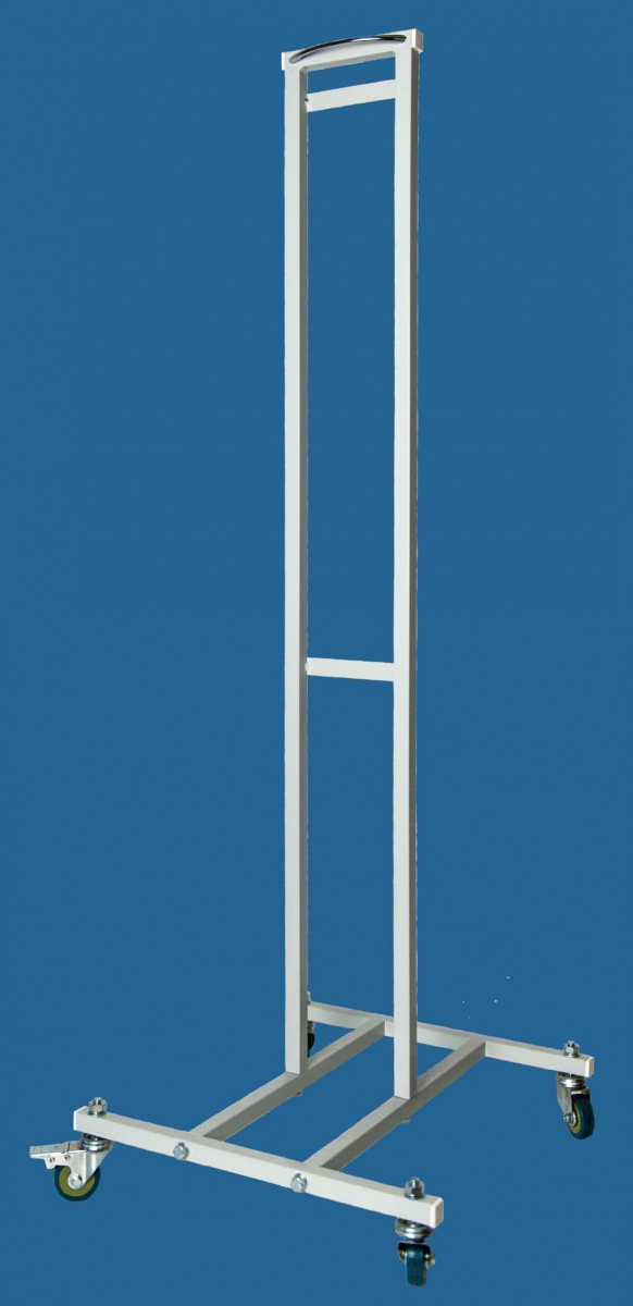 Передвижная опора оснащена четырьмя резиновыми колесами для перемещения по полу. Для удержания положения она обладает тормозной системой. Опора изготовлена из профильной стальной трубы размером 20×20 мм и покрыта химически стойким порошковым покрытием. При необходимости опора может легко разбираться и помещаться в компактном объёме.
